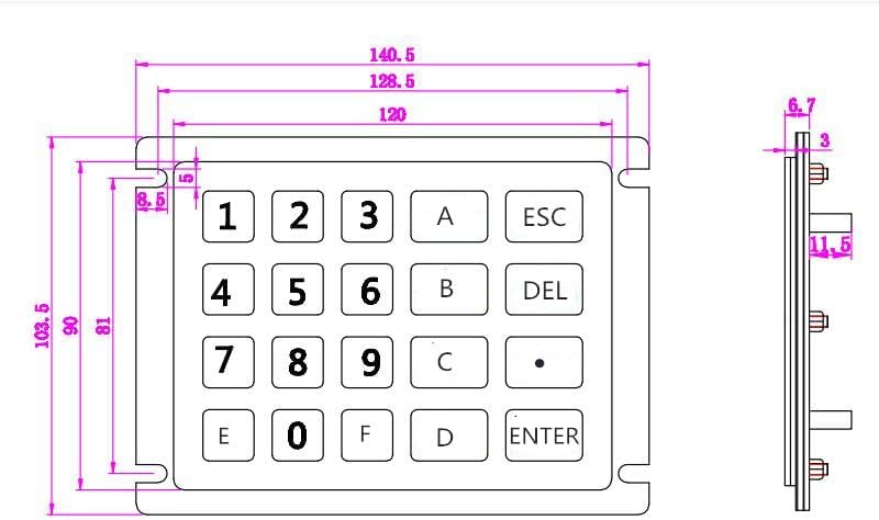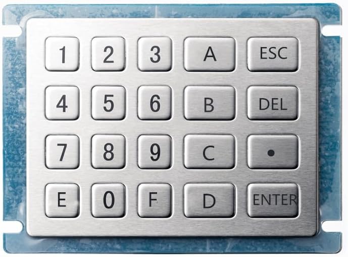 SPECIFICATIONSize:120*90mm (front panel)Number of Keys: 20keysMaterial: stainless steel (front panel) and alumina alloyKey travel:0.4mmkey switch lifespan: more than 2 million operationMounting style: Panel mountG.W.: 0.7KGSupply Voltage: +5V DC +/-5%Communication interface: Matrix port ,USB,PS2,RS232Protection Level: IP65(front panel)Operating temperature:-40 ~+70Storage temperature: -50 ~ +80MTBF >50000HMTTR