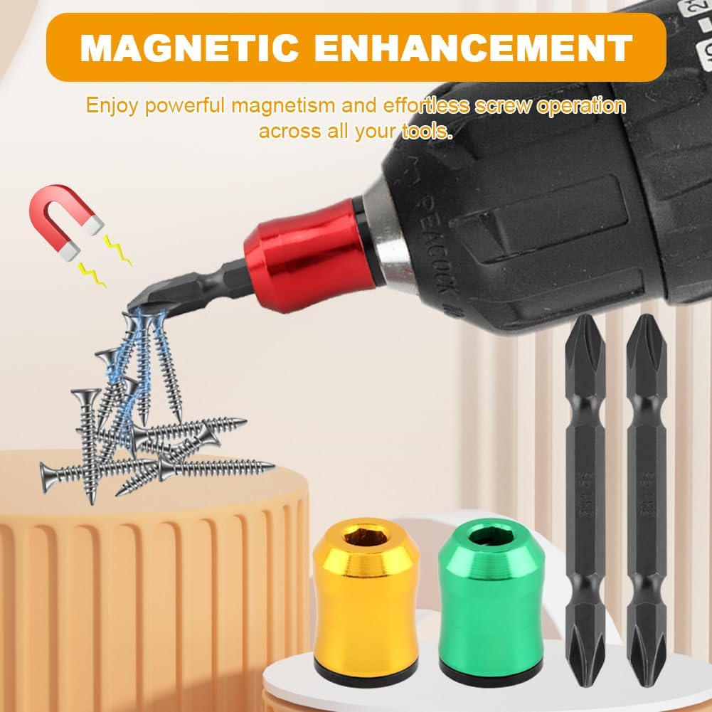 This 3PCS magnetic screw ring set fits most 1/4" hex screwdriver bits, drills, and impact drivers, helping enhance tool magnetism to hold screws securely, reduce drops in tight spaces, and provide a removable, lightweight aluminum accessory for furniture assembly, automotive repair, and general DIY tasks.Material: AluminumPackage Includes: 1 Box with 3 Magnetic Screw Rings and 3 Screwdriver Bits