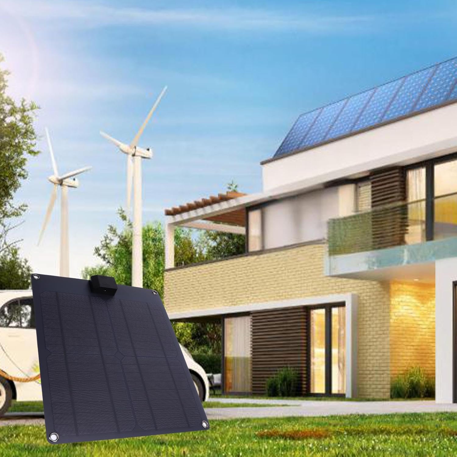 1. High Efficiency: Our solar panel features monocrystalline cells. A higher photoelectric conversion efficiency, reaching about 20%-25% under standard testing conditions. Compared to other polycrystalline and amorphous solar panels of the same size, our monocrystalline solar panel charges fast. 2. Battery Savior: Trickle charging is a slow charging method. When the charged battery is low, the charger initially provides a high current for fast charging. As the battery approaches full charge, the charger automatically switches to trickle charge mode. The charger delivers a smaller, steady current to replenish the power lost due to self discharge, keeping the battery fully charged and preventing damage from overcharging. Specification: Item Type: 30W Solar Panel Material: PET, EVA, TPT Solar Panel Material: High Efficiency Monocrystalline Silicon Product Size: Approx. 320x275x2mm / Approx. 12.6x10.8x0.08in Solar Panel Power: 30W Output Ports: 1 x USB, 2 x DC Features: 1. Suitable for various devices such as phones, power banks, rechargeable battery, energy storage devices, etc. 2. Built in stabilizing circuit in USB circuit box for fast charging at high current. 3. Equipped with 5A solar controller for stable and efficient charging. 4. Battery charging status indicator, red charging, green fully charged 5. Connect multiple solar panels together through the DC5521 port on USB circuit box for parallel increase in output power. 6. Flexible panel can be slightly bent for installation on more surfaces, USB circuit box is heatproof, rustproof, longer service life. How to Use: Remove the product from packaging and it is ready to use. Package List: 1 x Solar Panel 1 x Controller 4 x Supply Cords 4 x Suction Cups 1 x Instruction Manual