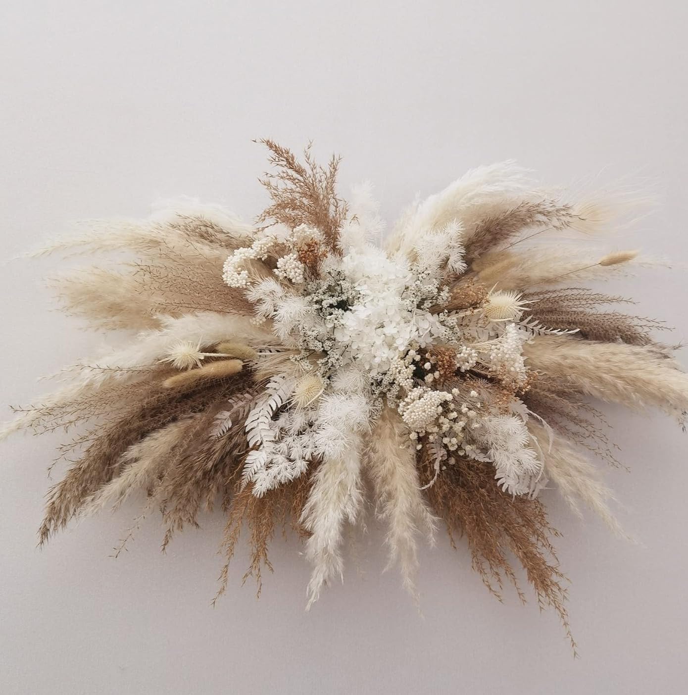 With soft blush and ivory tones, this pampas flower hoop adds a dreamy touch to weddings, nurseries, and modern rustic homes. It comes flat-packed for you to assemble with ease.