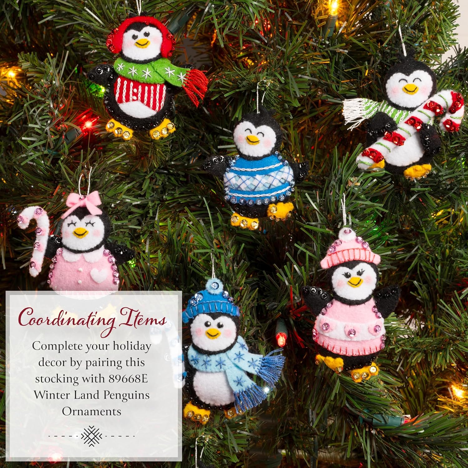 Bucilla Snow Angel Friends Stocking kit captures the timeless holiday tradition of creating snow angels with your friends! Santa and his penguin buddies leave their mark in the freshly fallen snow, adding joy and fun to your holiday décor. With this kit, you have everything you need to craft your stocking: pre-stamped felt for easy assembly, colorful embroidery floss, precision embroidery needles, and sparkling sequins and beads to elevate the snowy motif. Thoughtfully designed, the kit includes embroidery needles and straightforward instructions, ensuring everyone can enjoy a seamless creative experience!