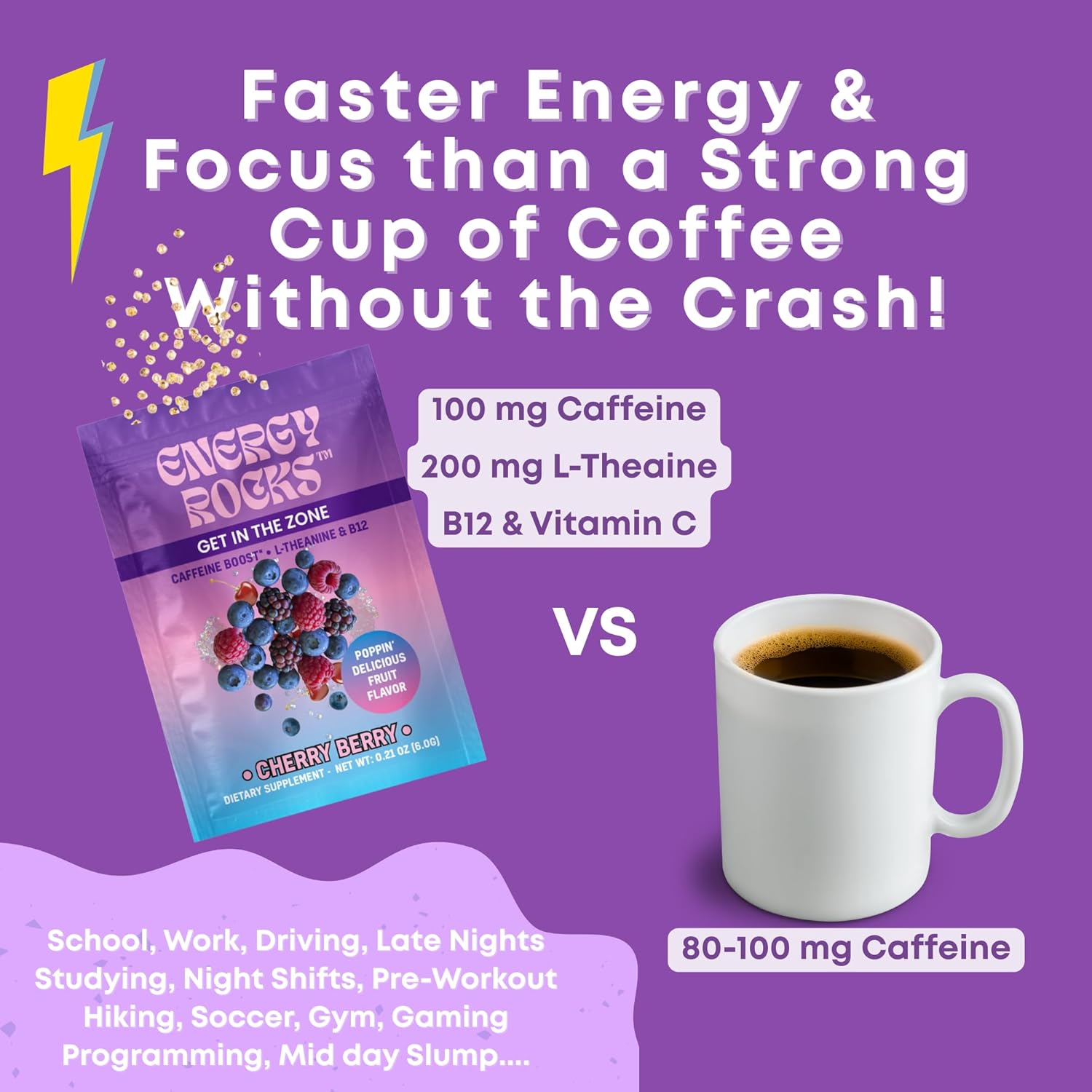 | Special Ingredients | B12, Caffiene, L Theanine |
