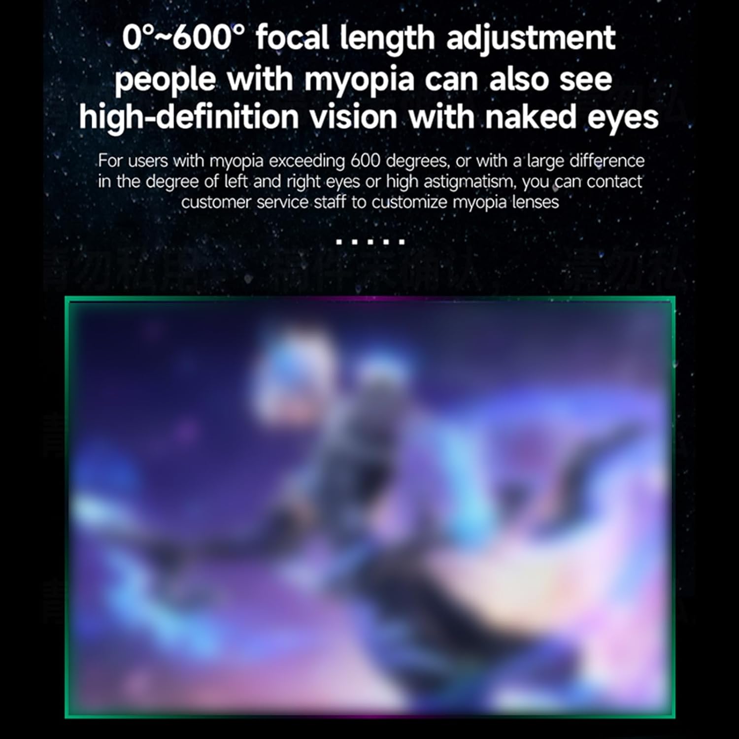 1. 400-Inch Portable Cinema Anywhere: Transform your smartphone into a massive private theater! The smart glasses project a virtual large screen for an immersive cinema experience wherever you go. The equivalent of a 400-inch screen at 10 meters away ensures every detail is vividly displayed, suitable for movies, games, and work. 2. Myopia Adjustment (0–600 Degrees): Designed for user convenience, these video glasses feature built-in diopter adjustment from 0 to -6.0D (0–600° myopia). Enjoy a clear view without the need for additional glasses, making it ideal for users with varying degrees of vision correction. 3. HD Display and High Brightness: Enjoy clear, vivid visuals with a 1920*1080 resolution screen, 4496 PPI, and 3000 nits brightness. Whether indoors or outdoors, every detail pops with true-to-life colors and sharpness, making it ideal for multimedia entertainment and detailed work. 4. Dual Speakers and 3.5mm Headphone Support: Immerse yourself in rich, directional stereo sound with built-in dual speakers. Prefer private listening? Plug in any 3.5mm headphones for automatic audio switching. With 6-level volume control, you can tailor audio to your environment. 5. Lightweight, Portable and Easy to Use: These smart glasses are ergonomically designed for all-day comfort. Simply connect to any Type-C >DP-enabled device to start using. Features an elastic locking mechanism, adjustable nose pads, and low 1.5W power consumption—ideal for on-the-go use. Spec: Item Type: Smart Video Glasses Display Resolution: 1920 x 1080, 4496 PPI Display Brightness: 3000 cd/m² (nits) Lens Type: Multi-layer resin lenses Diopter Adjustment: 0–600° myopia Connectivity: Type-C (with DP function) Audio: Dual speakers, 3.5mm jack Controls: Physical buttons Power Consumption: 1.5W Operating Conditions: Temperature 10°C to 60°C, Humidity How to Use: Connect to a mobile phone or gaming device for