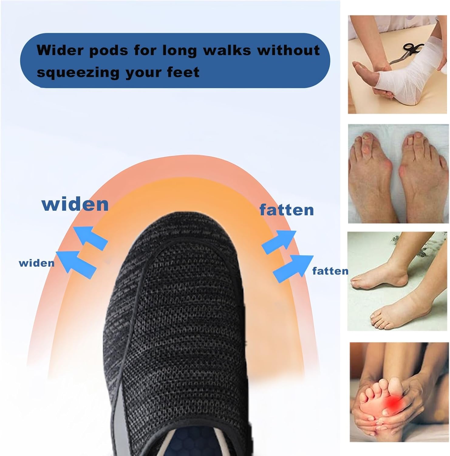 Breathable, comfortable, thick, wide, suitable for both men and women.Product name: walking shoes.Upper material: meshColor: black, blue, gray, beigeHeel height: medium heel (3-5CM)Applicable people: neutral, middle-aged and old people with wide feet, people with swollen feet due to various reasons.Applicable places: work, indoor, outdoor, running, sports, exercise, driving, fishing, jogging.Packing ListShoes x1Insole x3Socks x3Warm tips.-- Due to the difference of light and screen, the actual color may be slightly different from the picture color.-- Manual measurement allows 1-2 cm error.-- If you have thicker, wider or taller insteps, please choose a larger size!Brand Introduction:Established in 2009, LFFTBK specializes in premium shoes, walking shoes and casual shoes, we are committed to providing you with quality products and impeccable customer service that you can definitely trust!If you encounter any problems or need technical support, please feel free to contact our customer service team, we will be happy to serve you. Your satisfaction is our greatest pursuit, we welcome your valuable comments and suggestions to help us continuously improve our products and services!