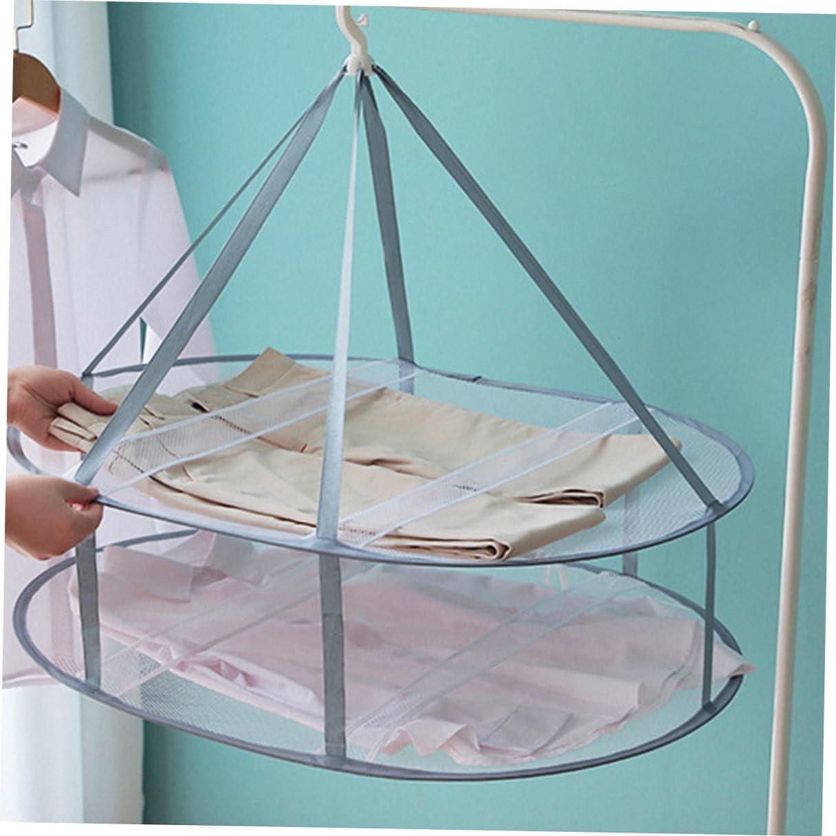 Package Include 3 x Socks Hangers Features - Size S: 51.50X51.50X36.00cm/20.24X20.24X14.15inch. (Single layer and double layers) - Material: Iron and cloth. - Size L: 76.50X76.50X38.50cm/30.06X30.06X15.13inch. (Single layer, double layers and three-layers) - Size L: 59.00X59.00X38.00cm/23.19X23.19X14.93inch. (Single layer and double layers) - Color: White. -Product Info:Clothes basket - Made by , no deformation, sturdy and . - Portable and compact, easy to use Drying Clothes Basket. - Creates extra vertical hanging space in any closet, make room for more clothes Iron Hanging Basket. - Suitable for drying clothes and socks Clothes Drying Hangers. - Perfect for clothes and socks hanging use, very practical Clothes Tuck Net.Goods DescriptionHanging Basket Hanging clothes and socks with considerate basket shape design, say goodbye to clothes bulge trouble.Drying Sweater Hangers The hanger shape is sleek, fit the human body curve, not easy to slip, tough and firm.Household Hangers It is a perfect choice for your family