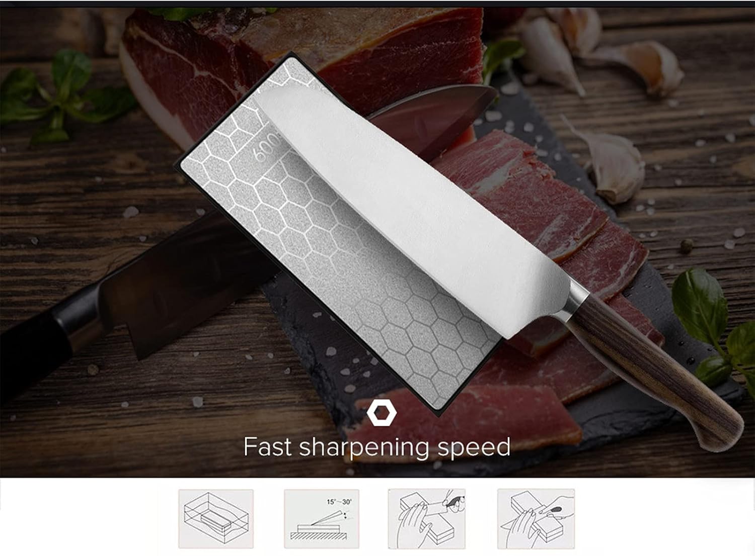 Features:Double sided diamond sharpening stonesInnovative cleaning channels, full diamond coatingPerfecty flat surfaces ideal for flattening chisel & plane blades.Double sided grinding to ensure the efficient and sharp sharpening resultHigh quality plastic base with non-slip silicone pads can prevent from sliding and ensure safety during sharpening a knifeSpecifications:Material: DiamondsSize: 6"Grits Available in Honeycomb Pattern (Optional):Coarse/Fine-400 Grit/1000 Grit Medium/Extra Fine-600 Grit/1200 Grit Coarse/Extra Fine-400 Grit/1200 Grit Grits Available in Dot Pattern (Optional):Coarse/Fine-400 Grit/1000 Grit (Dot)Coarse/Extra Fine-400 Grit/1200 Grit (Dot)Package Content:1 x Double-sided Diamond Whetstone with Base
