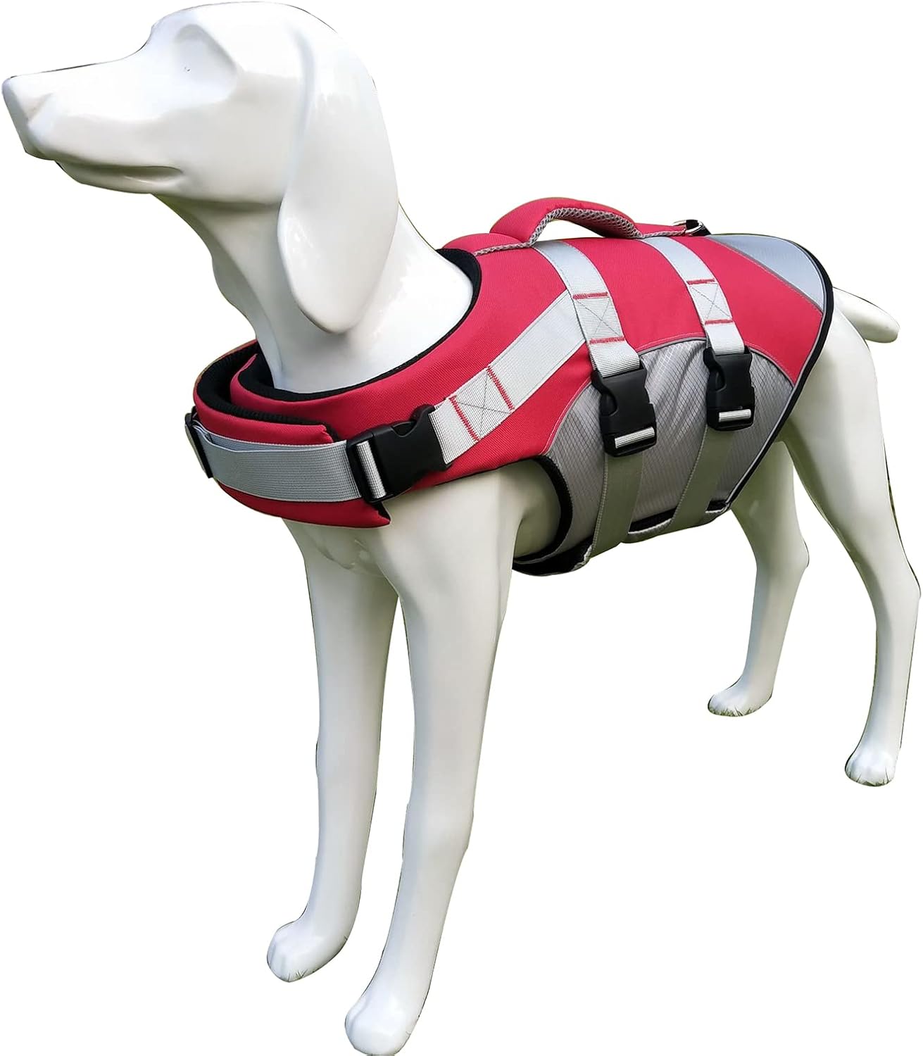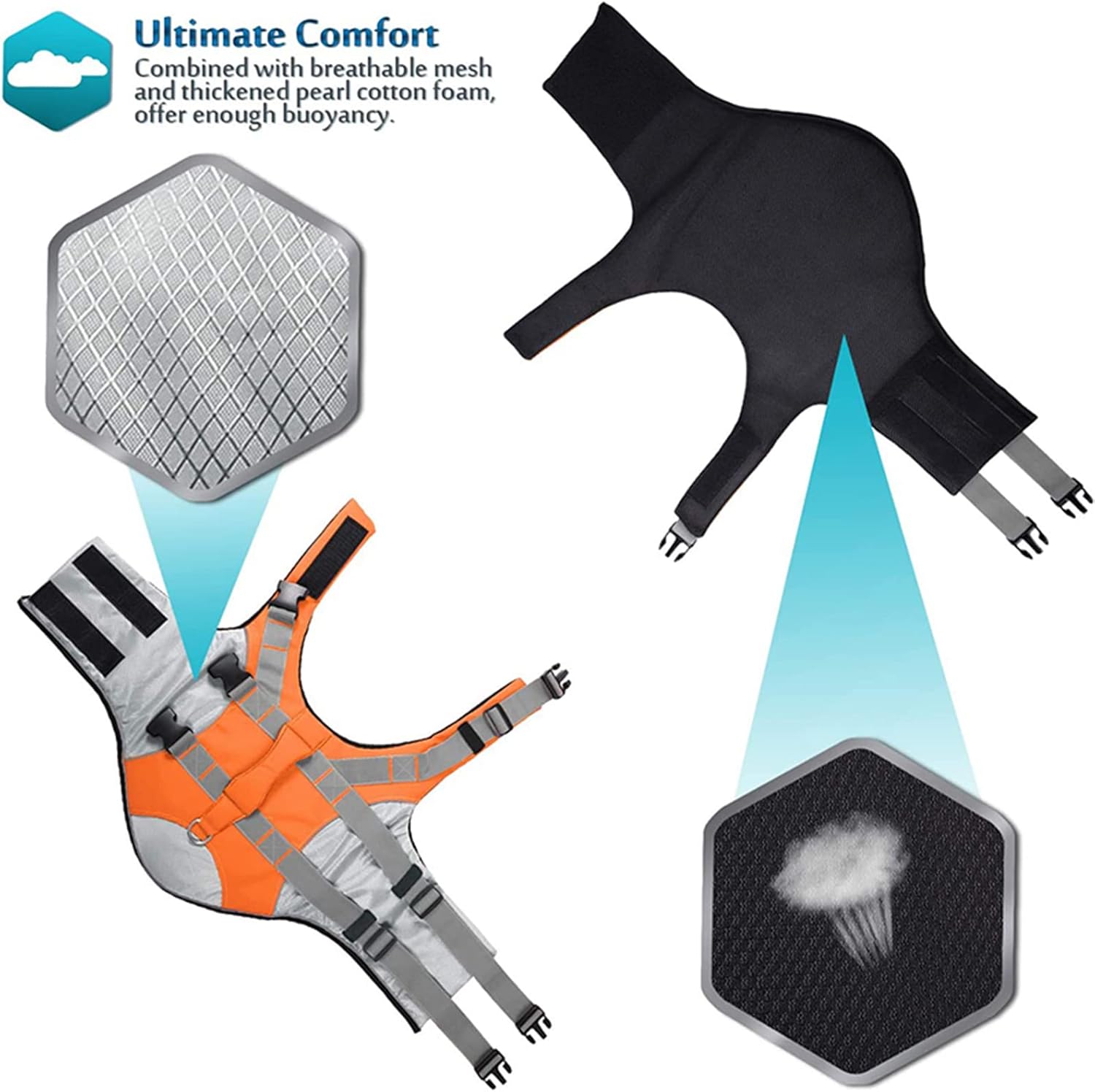 WHY CHOOSE US?1. In the hot summer, your pets will love to go with you, at the same time, our family and friends are so exciting to play in the water.Breathable lining keeps it easy to clean and dry fast.2. Dog life jackets are ideal to fit for Beach, Pool, Boating, Lake, Swimming, Hunting, Surfing.FEATURES1. Pet Life Jacket showcases a flotation solution to all water sport activities for dogs.2. Thoughtful neck pad design, durable handle could help you better grabbing your pet.3. Comfortable fit, easy to put on and take off.4. Lightweight and portableMEASUREMENT1. When the dog stands forward2. Use a soft ruler to measure a circle around the back of the dog's front leg, then you get the Chest Girth of your dog.3. In order to make your dog wear more comfortable, we recommend that you add 3-5cm/1.4-2.0" to the dogโs Chest Girth then choose sizes according to our Size Chart.PARAMETERProduct: Pet lifejacketMaterial: High elastic oxford clothColor: Pink, Black, Blue, OrangeSize: S, M, L, XLPACKAGEDog lifejacket * 1โ ๏ธNOTICEManual measurements, please allow 1-3cm/0.4-1.2" error.