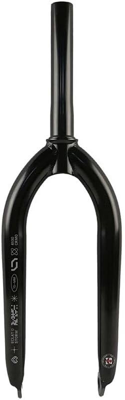 Elevate your BMX or mountain bike build with the Eclat Storm TA Rigid Fork 20" - the perfect combination of durability, precision engineering, and sleek style. Crafted from heat-treated Chromium-Molybdenum (Cr-Mo) steel, this rigid fork delivers exceptional strength and long-lasting performance, making it ideal for aggressive trails, urban riding, and technical parks. Materials & Engineering: Constructed from heat-treated Cr-Mo steel, the Eclat Storm TA fork offers superior durability and impact resistance. Its oversize fork crown not only enhances structural integrity but also improves the leg junction, ensuring reliable performance under demanding riding conditions. The fork's flush fit design seamlessly integrates with frame head tubes for a clean aesthetic and optimized handling. Performance & Components: Designed for 20-inch wheel setups, this fork features a 25mm rake for precise steering responsiveness. It's compatible with 14mm thru-axle hubs and female front hubs with 3/8" bolts (adapters included), providing flexibility for various wheel configurations. The 2.4" tire clearance allows for aggressive, wide-tire setups perfect for rough terrain or street riding. At just 988 grams (2.17 lbs), the Storm TA balances strength with lightweight performance, minimizing rider fatigue without sacrificing durability. Technology & Features: The new-school closed dropout design offers superior strength and ease of maintenance, ensuring secure wheel fitment and quick setup. The 170mm steerer tube length accommodates a variety of frame geometries, while the black finish offers a sleek, stealthy look that complements any bike style. Style & Use Case: With its modern aesthetic and robust build, the Eclat Storm TA Rigid Fork is perfect for riders seeking a dependable upgrade for freestyle, BMX, dirt jumping, or urban commuting. Its versatile design excels in demanding riding environments, providing the stability and control needed for technical tricks or rugged