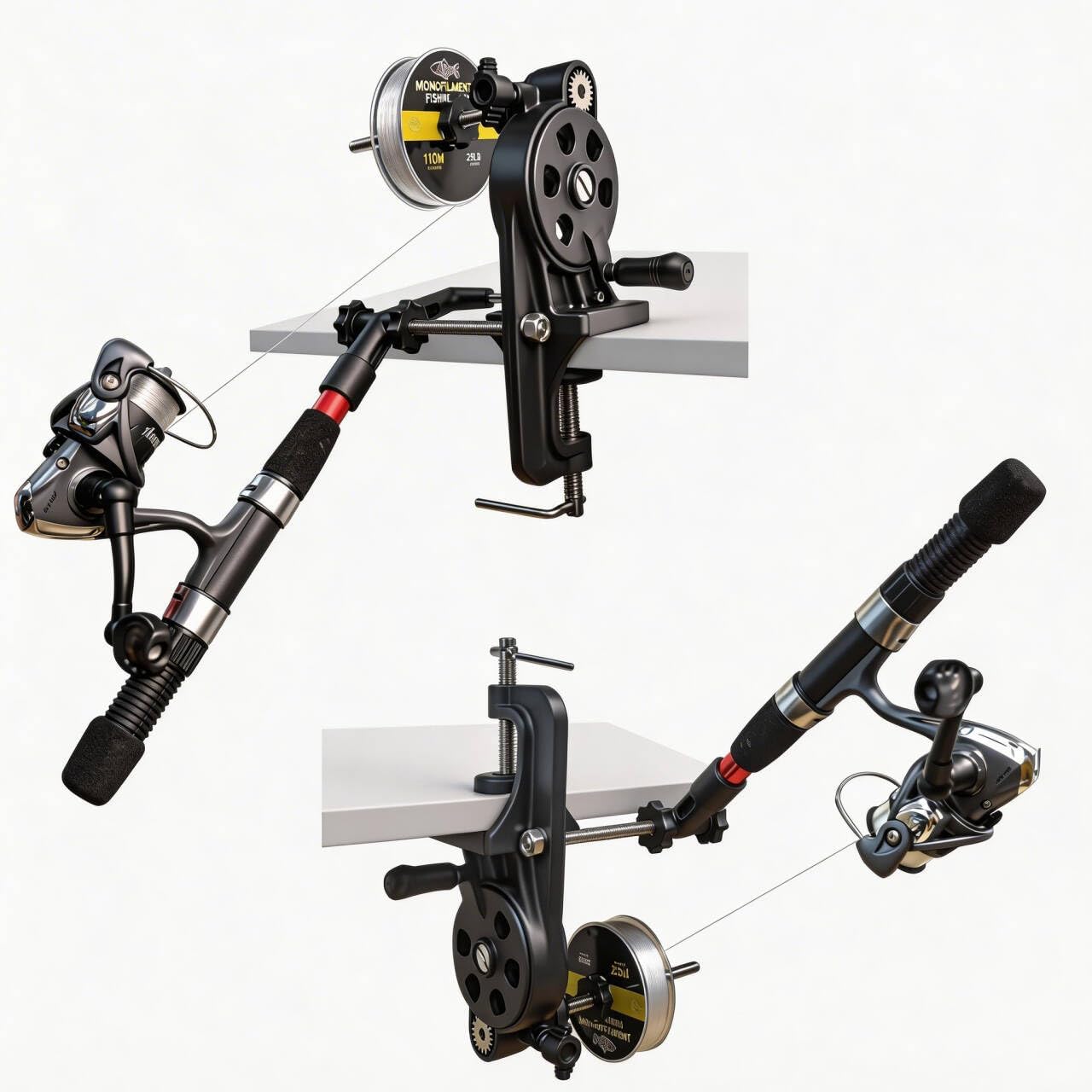 Tired of slow, tangled, two-person fishing line spooling that wastes your precious fishing time? Our Fishing Line Spooler Winder Machine revolutionizes your line management with a 5:1 high-speed gear ratio – one handle turn winds the spool 5 times faster than standard 4:1 models, saving you over 15 minutes per session. Whether installing fresh line or recycling old line, enjoy effortless, tangle-free performance every time. Key Advantages Over Competitors Ultra-Fast 5:1 Ratio with smooth ball bearings for quick, fatigue-free winding – ideal for busy anglers. True Two-Way System – Transfer line spool-to-reel or reel-to-spool seamlessly, no extra adapters needed for smaller spools (3/8-inch liners included). Single-Point Silicone Anti-Slip Base – Quick one-twist lock on any 5-43mm thick surface, more stable and faster setup than complicated dual-clamp designs. Rust-Proof Durability – Stainless steel core components + high-strength nylon ensure longevity in saltwater environments without deformation. Beginner-to-Pro Friendly – Adjustable tension prevents knots, ergonomic handle reduces strain, compatible with spinning, casting, spincast, trolling reels.