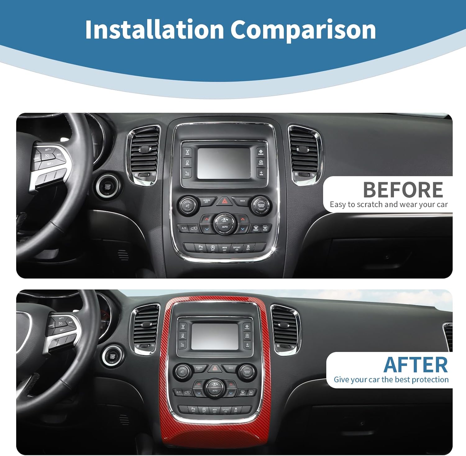 Features - Material: Made of High-Quality ABS Plastic - Paint Baking and UV Treated on surface Easy installation with double-sided tape -1. Clean The Surface Area Where You Need To Paste And Then Wipe The Water With Towel Or Tissues -2. Remove the cover on the Double-sided tape -3. The Double-sided tape position should align properly on the place -4. Finally, press the decorative piece by hand, making it more solid on it. Please press 20-30 seconds or more when pasting and don’t dip the item into the water within 48 hours Attentions - Please confirm your car model is as same as the picture before submitting your order - In case it falls off for some car models, just add some tape and put the cover back on, then they will work perfectly