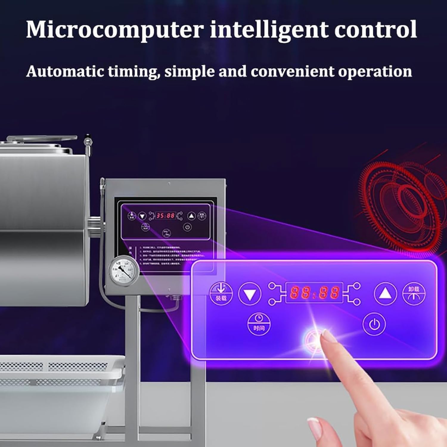 Elevate your meat processing with our premium Commercial Meat Tumbler! Whether you're a butcher, restaurant owner, or a passionate home cook, this heavy-duty stainless steel tumbler is your secret weapon to achieving succulent, flavorful results every time. Specification: Product Name:Commercial Tumbling Meat Curing Machine Model:Desktop computer model Time range: 1-99 minutes Voltage power: 150W/220V Overall size: 640*300*485 Drum size: 300*325*240 Whether vacuum: No mode: computer model Packing: Commercial marinade machine *1 Power cord *1 Manual *1