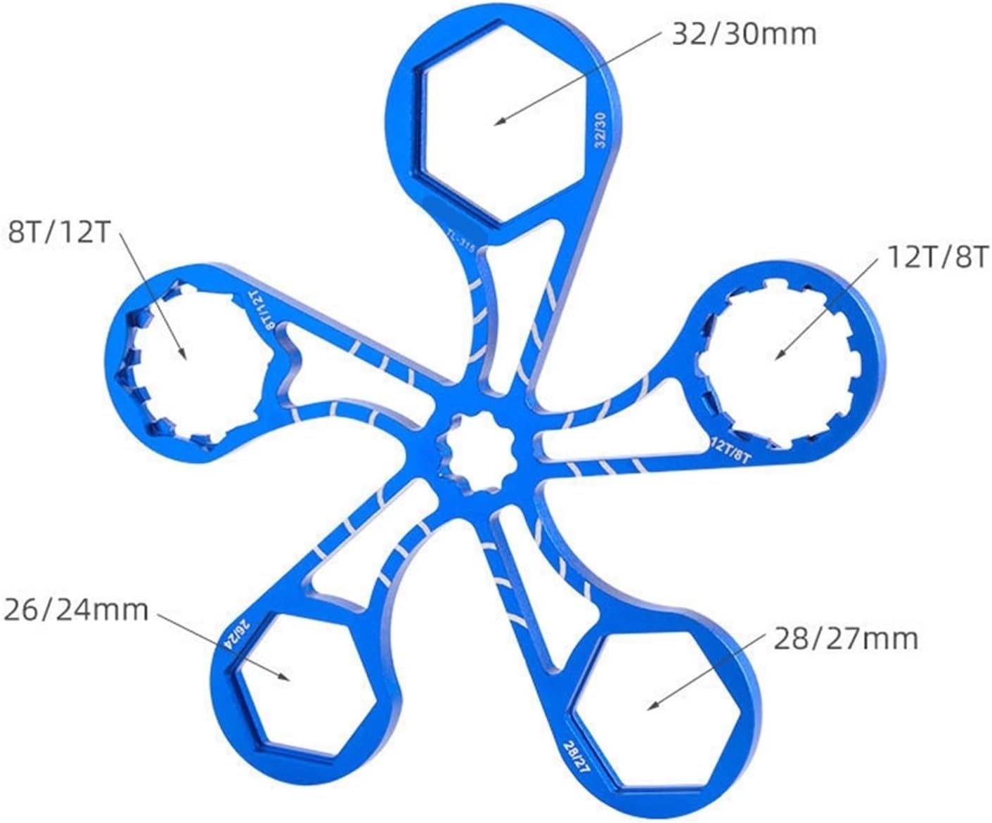 Material: Aluminum alloyProduct category: WrenchItem number: TPGJ-916-4Color: Aluminum alloy front fork shoulder cap wrench