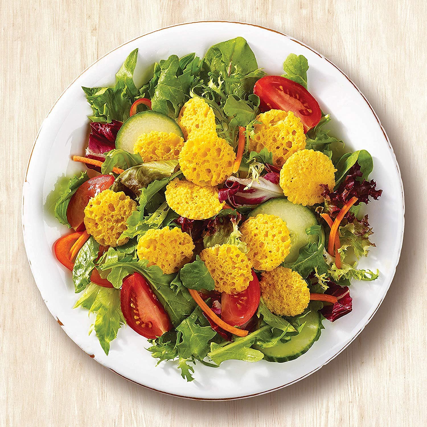 Mrs. Cubbison's crispy baked cheese crisps are 100 percent parmesan cheese. They are the best thing since sliced cheese. Delicious Cheddar flavor. Great for salads, soups, casseroles, snacking, entertaining.