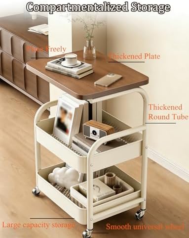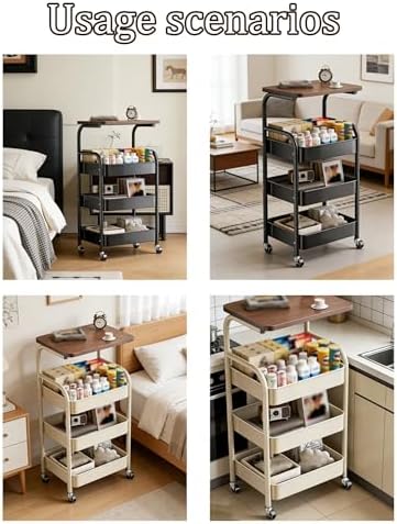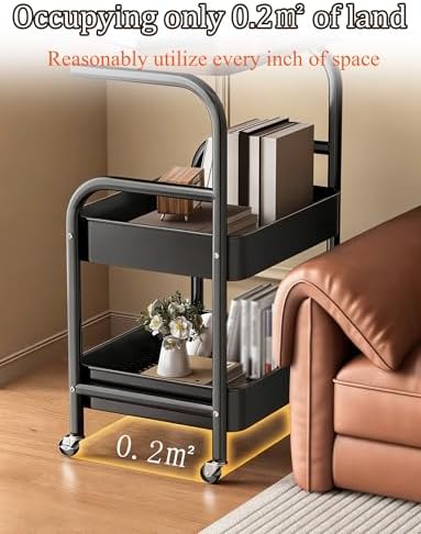 Introducing our versatile storage trolley on wheels, a perfect small solution for organizing your home. This functional piece features a robust wooden tabletop that serves as a side table, coffee table, or craft table, catering to various needs. Equipped with two spacious mesh baskets, it offers plenty of ventilated storage for essentials like arts and crafts supplies, books, toiletries, and more. The 360° swivel wheels allow this craft trolley to glide effortlessly and quietly across any surface, while the built-in brake ensures it stays firmly in place when necessary. Crafted from thickened metal and E1 particle board, this kitchen trolley is designed for durability and stability, making it a reliable addition to your space. The breathable mesh baskets not only keep your items visible but also promote air circulation, keeping your belongings fresh. Safety is a priority, with rounded corners on the wooden tabletop that help prevent accidental bumps. Its ample floor clearance ensures easy access to stored items, enhancing your overall experience. This storage trolley is easy to assemble and maintain, making it an ideal choice for any modern home seeking a blend of functionality, style, and practicality. Please note: Actual product color may vary due to different lighting conditions. Minor dimensional errors may occur due to manual measurement. Thank you for your understanding.