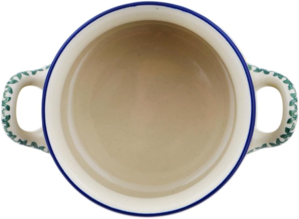 Genuine Polish Pottery handmade in Boleslawiec, Poland. Region celebrated for its long-standing ceramic tradition and artisanal craftsmanship.This authentic, hand-painted Polish stoneware Bouillon Cup in the Turkish Flowers pattern featuring a Signature UNIKAT design is handcrafted by Ceramika Artystyczna using traditional hand-painting and high-temperature firing techniques for lasting durability and everyday functionality.UNIKAT Signature Design:UNIKAT pieces feature intricate hand-painted artwork signed by the artist and produced in limited quantities, making each one a collectible work of art.Certificate of Authenticity:Includes an official certificate verifying the handmade origin and authenticity of the piece.Care Instructions:Your order includes care instructions and helpful information, especially useful when gifting Polish Pottery.Dimensions:2.6" high, 3.9" wide, 5.3" long (max outside edge or handle).Capacity: 11 oz (filled to the rim).Certified Polmedia Polish Pottery Features:* Lead & Cadmium Free: Safe for everyday use.* Microwave Safe: Heat food or drinks with confidence.* Dishwasher Safe: Pattern will not fade.* Oven Safe (up to 480F): Excellent for baking and reheating.* Freezer Safe: High-fired stoneware handles temperature changes.* Chip & Scratch Resistant: Durable for daily use.* Hand-Painted Artistry: Decorated by skilled artisans.* Never-Fade Colors: Patterns remain vibrant forever.The Essence of Polish Pottery:For generations, artisans in Boleslawiec have crafted stoneware valued for durability, heat distribution, and long-lasting beauty. This tradition continues today in every piece of Polish Pottery.