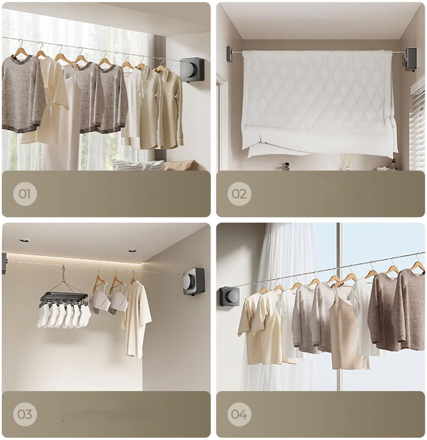 Widely used: The clothesline does not take up space, which is both convenient and space saving, the telescopic clothesline is widely used for hanging wet swimsuits, baby clothes, delicate clothes, and other clothes that cannot be machine dried.Material: ABS+Stainless SteelSize: 4.2mColour: GrayThe retractable clothesline is mainly used in hotel rooms and homes, where clothes can be dried temporarily.Invisible Clothesline Clothes Drying Magic Rope Indoor No-Punch Bathroom Invisible Retractable Balcony RopeAutomatic designed--The retractable clothes-drying rope has an pulling ring, which can be automatically withdrawn into the box after use. It is convenient to use and saves space.Flexible use--The clothes dryer moves freely from side to side so that it can be stored neatly against the wall and allowing you flexibility to where you can fasten.Packing list: 1 x clothesline.