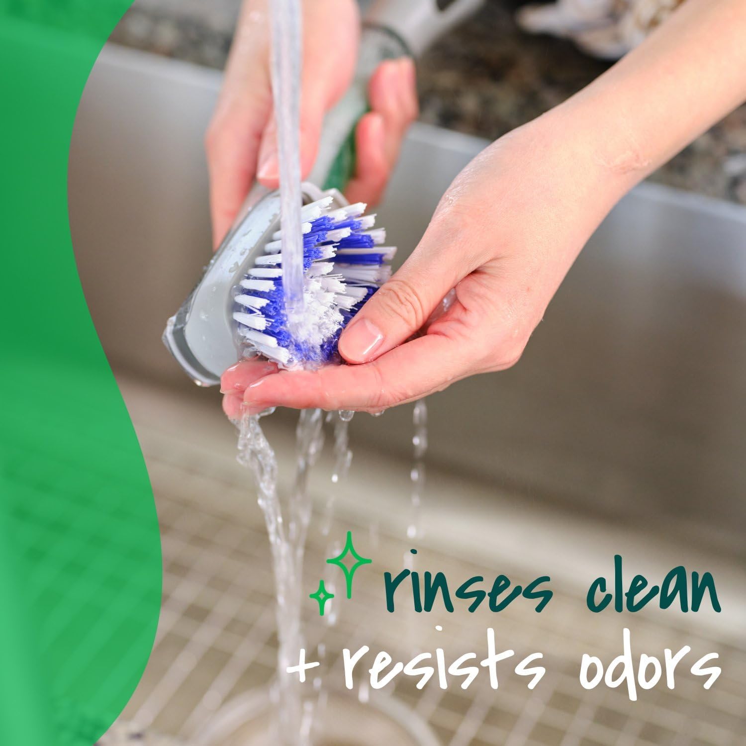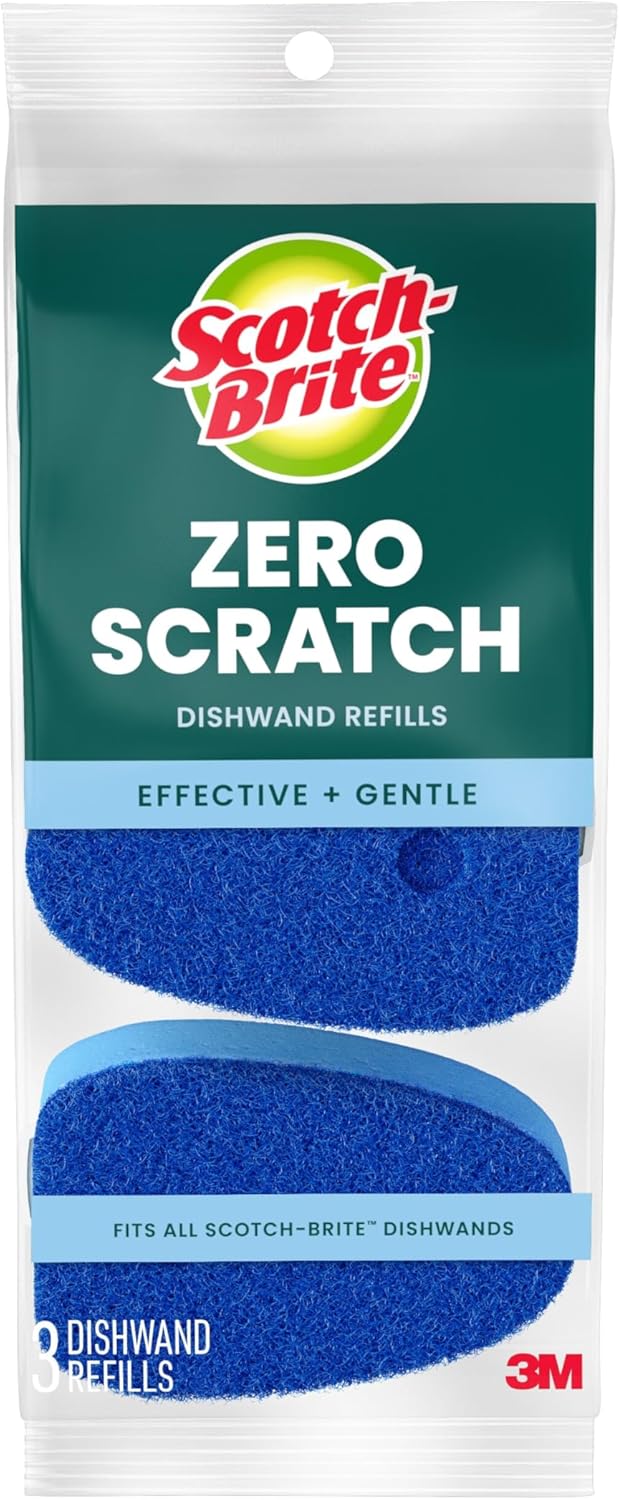 Keep your hands out of the mess with the Scotch-Brite Odor Resist Soap Control Dishwand Brush (4-Pack). The two different non-scratch bristle materials for long-lasting scrubbing power are odor-resistant* and safe on non-stick cookware, dishes, tubs, showers, and more. The built-in scraper helps remove stuck-on food. On the non-slip grip handle, a leak-free valve keeps soap contained, while the upgraded base allows the standing dish brush to remain upright between uses for a cleaner sink area and faster drying. When it’s time to refresh, just lift the tab to swap in a new Scotch-Brite Dishwand Refill, then twist off the easy-fill cap to add soap. Dishwasher-safe and reusable, this cleaning wand is built to last. Scotch-Brite cleaning supplies give you the power to quickly clean up life’s everyday messes — that’s why we’re America’s #1 selling dishwand brand. *This Scotch-Brite cleaning tool contains an antimicrobial agent in the scrubber pad that protects the product from bacterial odors. Product does not protect users or others from food-borne or disease-causing bacteria. Clean thoroughly after each use. KEYWORD INDEX: Dishwand, Cleaning Brush, Dish Wand, Scrub Brush, Dish Soap, Dishwands, Dishwand Refills, Cleaning Wand, Standing Dish Brush