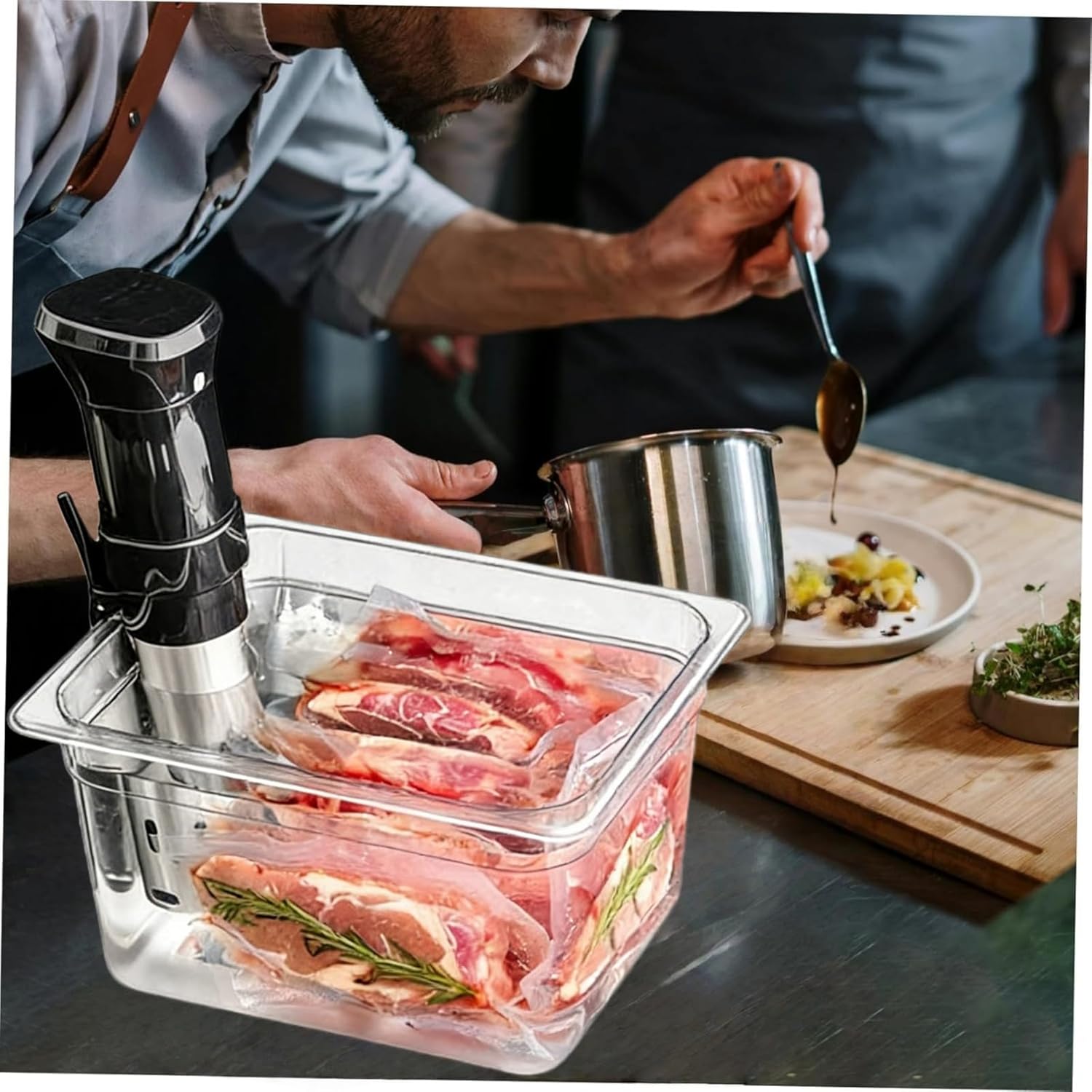 Elevate your sous vide cooking with our 4-variant container: 6L/11L (6.5/12 Quart) with lid, or lid + 304 stainless steel rack. Crafted from BPA-free food-grade polycarbonate, it resists -40°F to 212°F (-40°C to 100°C), fit for cooking, freezing, marinating. Universal pre-cut lid (3.6"L x 2.6"W) works with most immersion circulators. Transparent, non-slip, easy-clean design—ideal for home cooks & small catering. Color:transparent Material:Polycarbonate (PC) stainless steel Material characteristics:Food grade Capacity:12 quart .5 quart Note: Confirm your machine’s compatibility with the lid hole before purchasing.