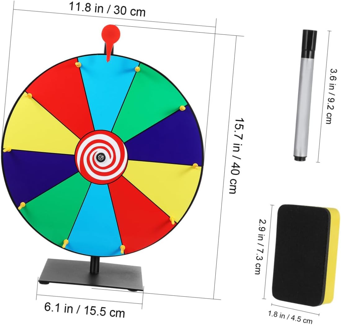 Package List 1 x prize wheel Characteristics -Color:Multicolor rotating display turntable - Stable Placement: The tabletop prize wheel features a stable base design, ensuring it remains steady and secure on any tabletop wheel raffle game. - Easy Use: The prize wheel is simple to use and install, requiring only a rotate to conduct a raffle, ensuring that operate it without skills wheel. - Wide Application: Suitable for a variety of occasions, the prize wheel is perfect for parties, gatherings, games, festivals, and entertainment events Carnival Game Wheel. -Material:Foamed PVC sheet fundraising wheel - Sturdy Materials: Made from carefully selected foamed PVC sheet materials, the prize wheel is resistant to damage over time portable prize wheels. -Size: 40.00X40.00X0.80cm/15.72X15.72X0.31in circus - Prize Tool: The prize wheel serves an excellent tool for various raffles, creating an engaging atmosphere and attracting customers circus decorations.Goods Informationgame wheel Introducing our Prize Wheel, the great prop for any draw event! Designed to create an exciting atmosphere, the Prize Wheel is an for various types of giveaways.portable prize wheels Its easy-to-use functionality allows for a simple experience