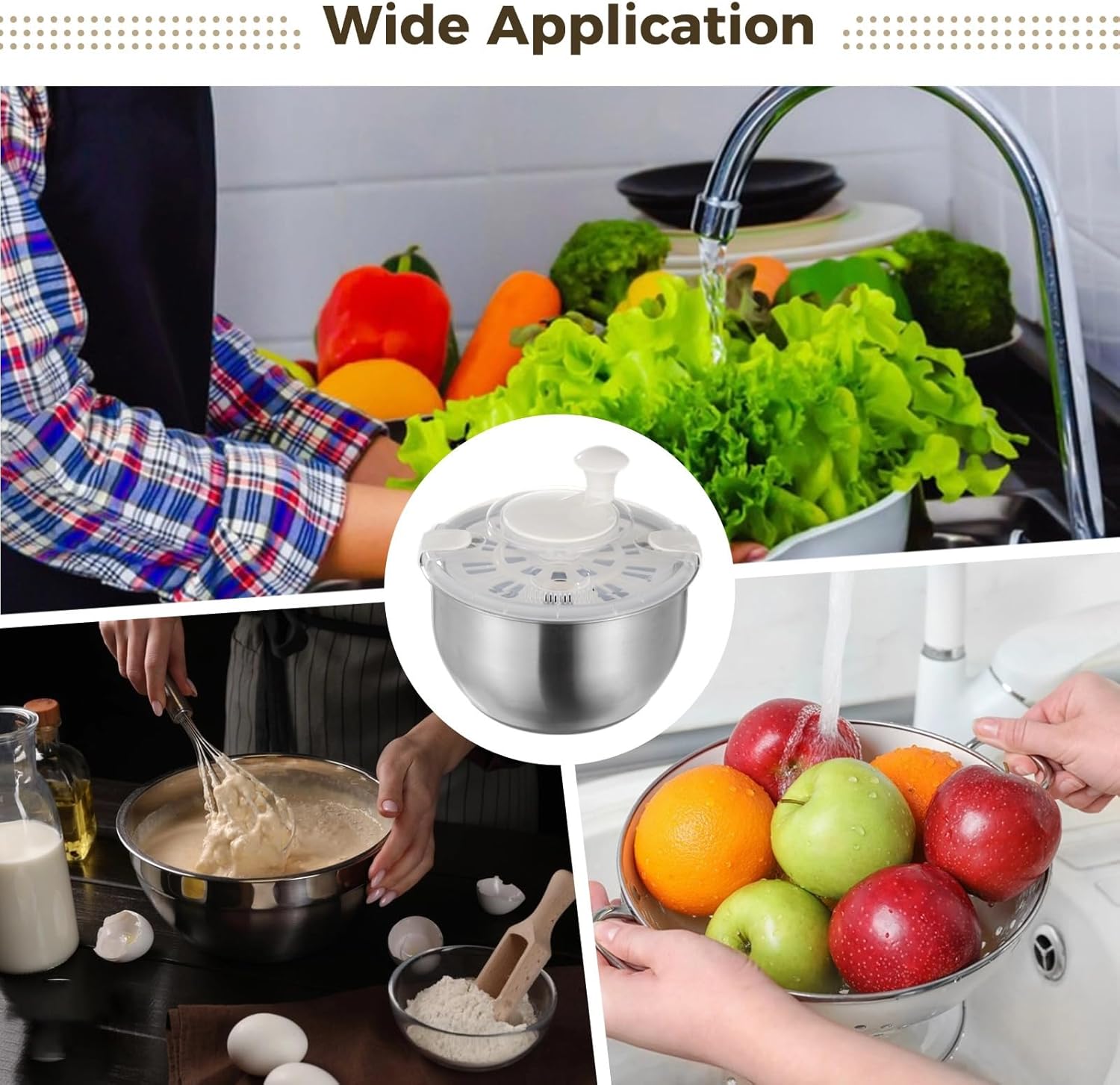 Color:Silver Material:Stainless Steel Product Size: 9.8 x 8.3 in Package Includes:1 * Stainless Steel Salad Spinner Note: - Please refer to the measurement. Tiny measuring error is allowable in normal range. - There might be a little color difference due to the monitor, camera or other factors, please refer to the physical item.