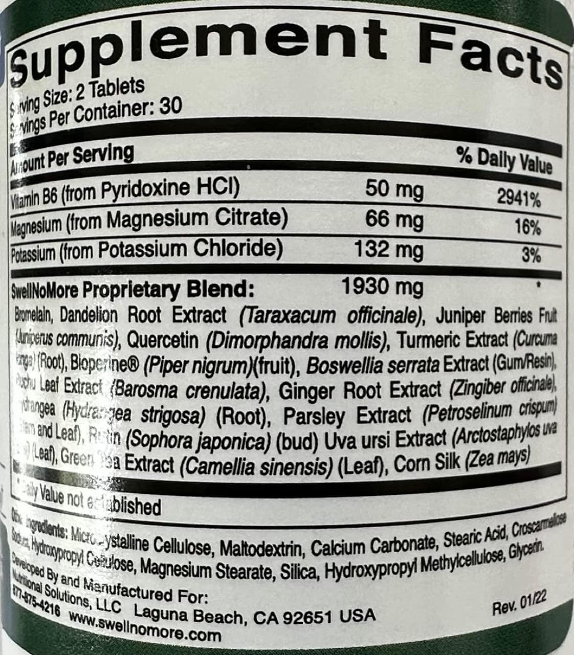 Swell No More is a dietary supplement designed to promote proper response to inflamation, water retention and swelling.