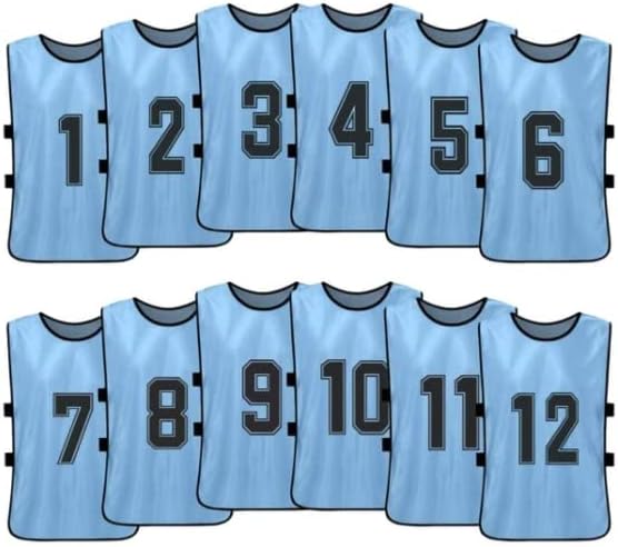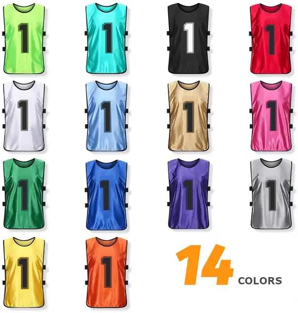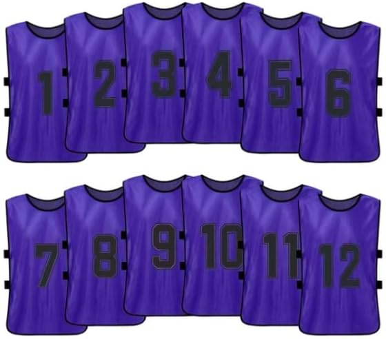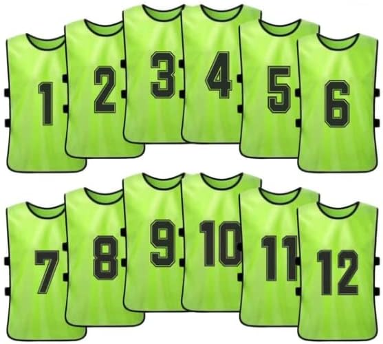 OPEN SIDES SCRIMMAGE VESTS PINNIES WITH NUMBERS 1 to 12 MADE FROM LIGHTWEIGHT AND EASY TO DRY MESH: The lightweight and fitted mesh material utilized in the manufacturing of these soccer training pinnies enure that you can use your full range of movement when perfecting techniques. Designed to allow the body to breathe naturally. These training vest are Breathable, Quick dry, Anti-pilling, Eco-friendly. Perfect for differents scenarios: Lacrosse, Soccer, Football, Hockey, Basketball or Volleyball.
