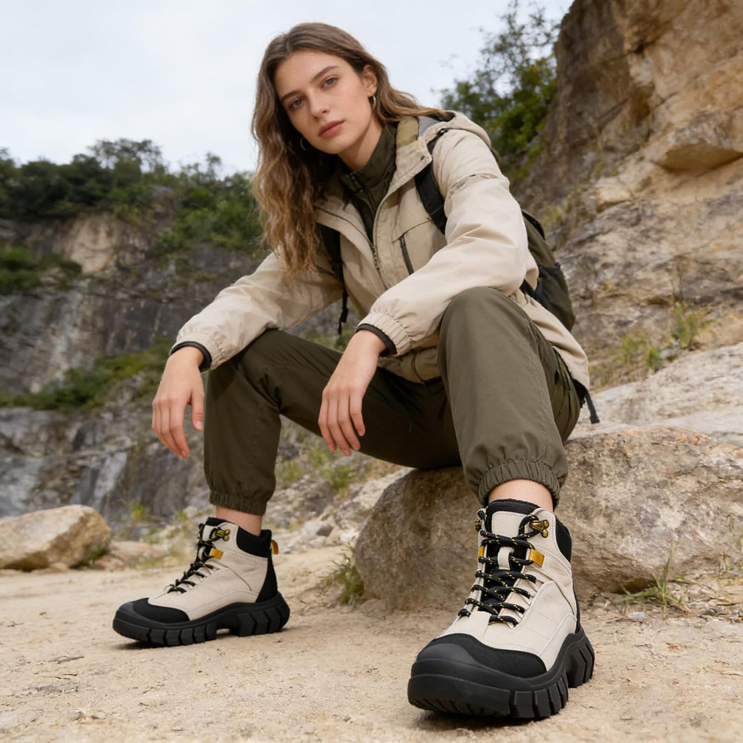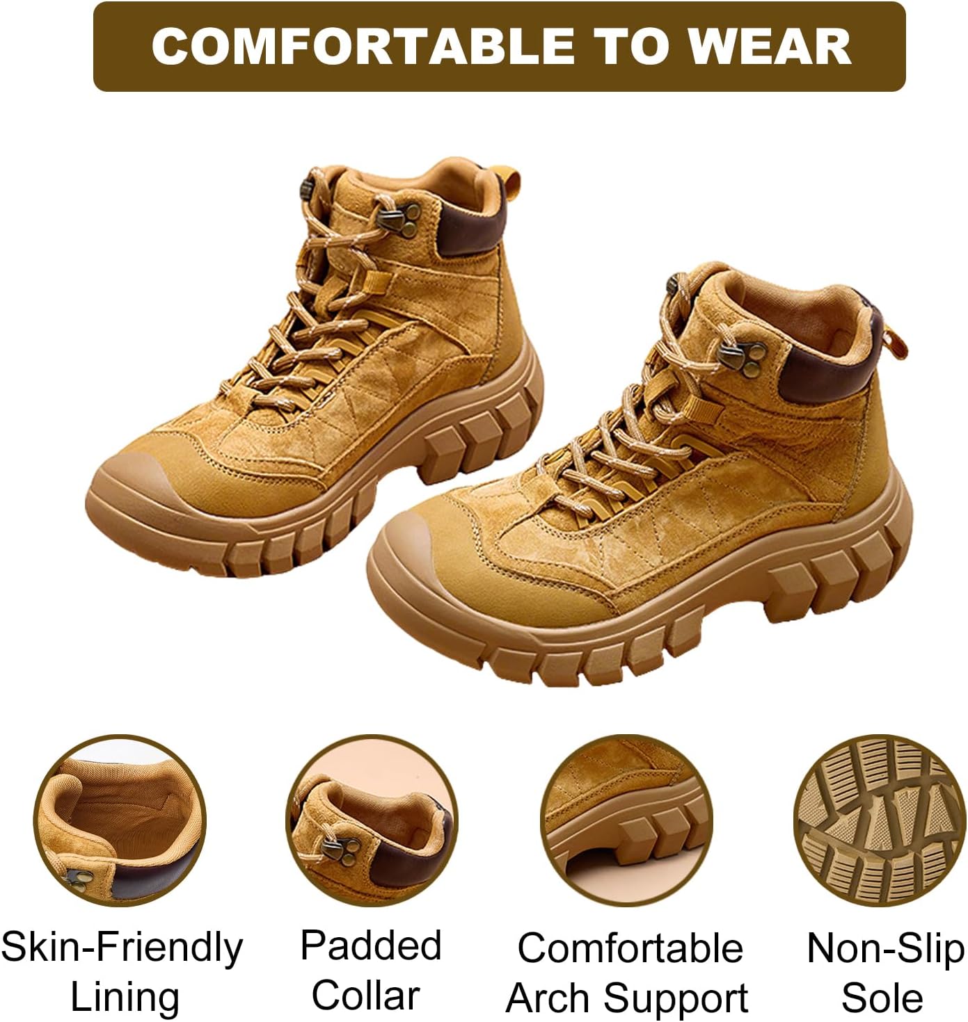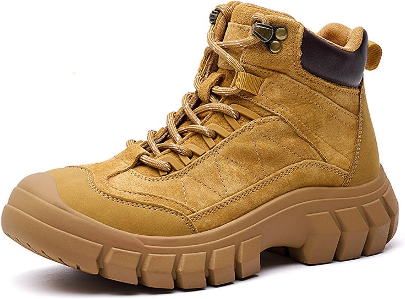 Engineered for your next expedition, these boots combine durable suede construction with a supportive platform design. The secure lace-up closure, reliable arch support, and advanced non-slip sole offer stability and comfort for outdoor trails, climbing, and athletic pursuits. Premium Materials & Functional Design Crafted from durable suede for resilience against outdoor elements. Features a secure lace-up closure with reinforced eyelets for a customizable, locked-in fit. Built on a sturdy platform sole that provides enhanced stability and ground clearance on uneven terrain. Designed with a classic combat boot silhouette, blending utility with everyday style. Reinforced toe and heel areas offer added protection and abrasion resistance. Comfort & Performance Features Integrated arch support helps maintain foot comfort and reduce fatigue during long activities. Advanced non-slip rubber lug sole delivers superior traction on wet, rocky, and slippery surfaces. Padded ankle collar and cushioned insole provide all-day comfort and support. The platform design offers a stable base, improving balance and reducing impact on joints. Versatile Wearing Occasions Ideal for day hiking, trail walking, and exploring nature paths. Suitable for light rock climbing, bouldering, and outdoor fitness activities. Perfect for camping trips, fishing, and seasonal outdoor festivals. Great for casual daily wear, urban exploration, and creating a rugged fashion statement. Excellent for travel, adventure tourism, and varied terrain exploration. Practical Benefits The lace-up system allows for precise adjustment to accommodate different sock thicknesses and foot shapes. Durable construction is designed for repeated use in demanding conditions. Versatile aesthetic transitions smoothly from functional outdoor gear to stylish casual wear. Key Features Upper Material: Premium Suede Sole: Non-Slip Platform Lug Rubber Sole Closure: Lace-Up Support: Arch Support Style: Platform Hiking / Combat Boots Warm Reminder Please check our size chart before ordering as manual measurement may have slight variations. Suede is a natural material; color and texture may have slight variations.