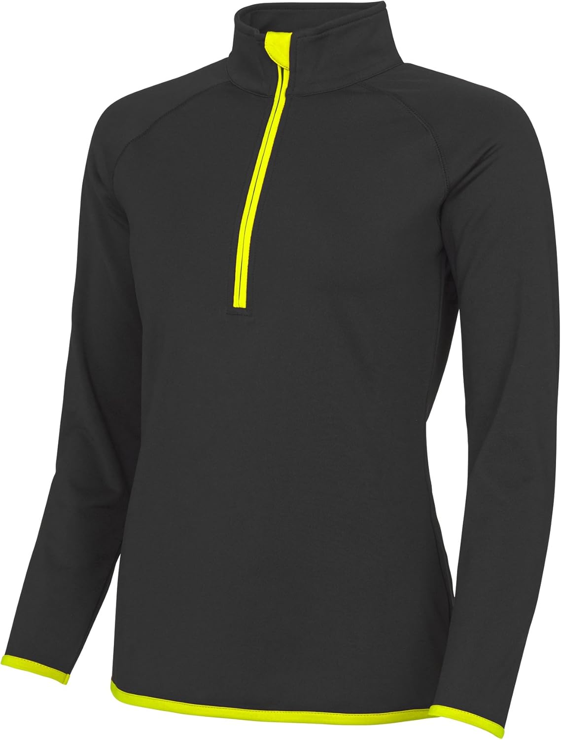 Fabric that hugs your body. Tight fit, raglan sleeve design. Self-fabric contrast color binding at zip. 87% Polyester, 13% Elastane. XS: 4, S: 6, M: 8, L: 10, XL: 12.