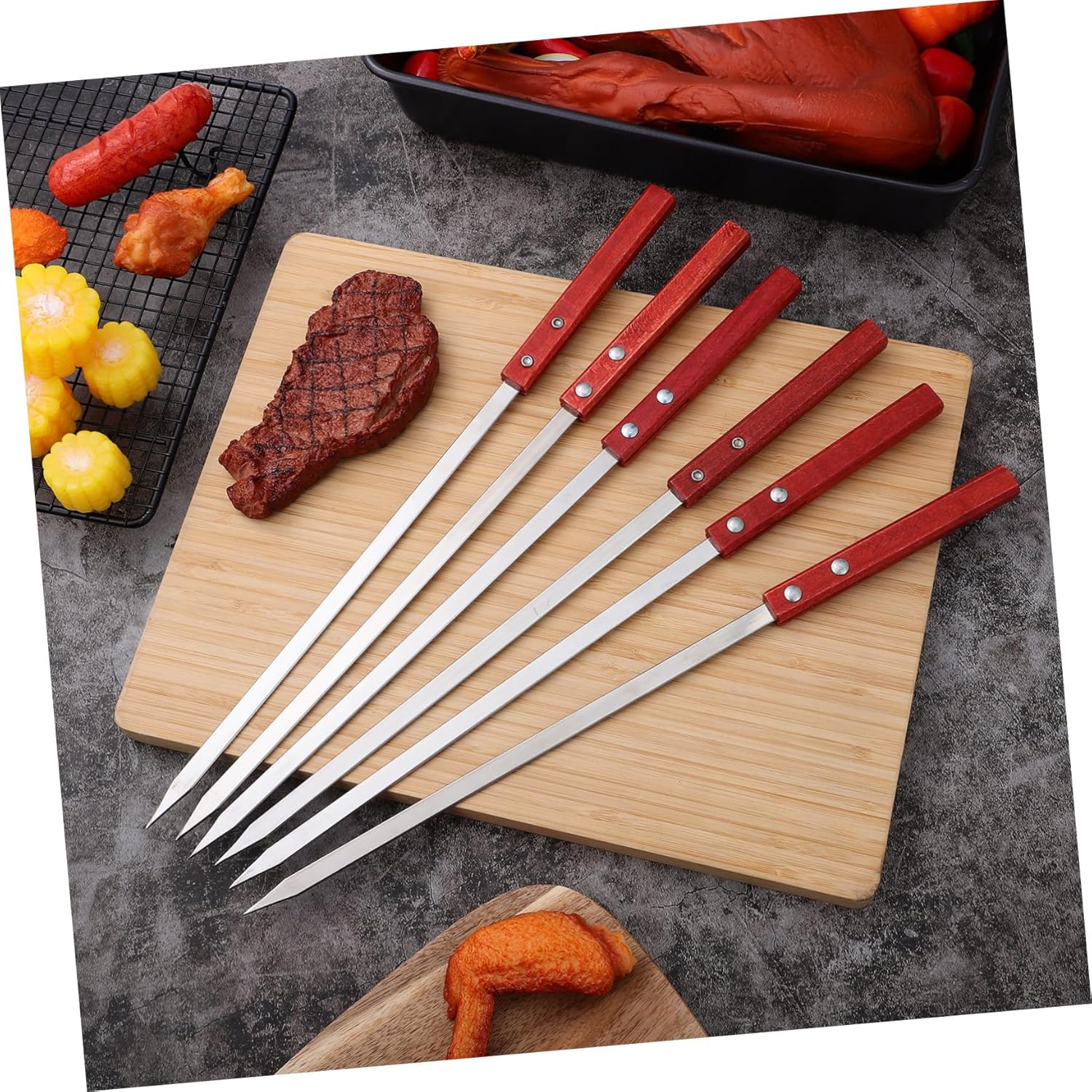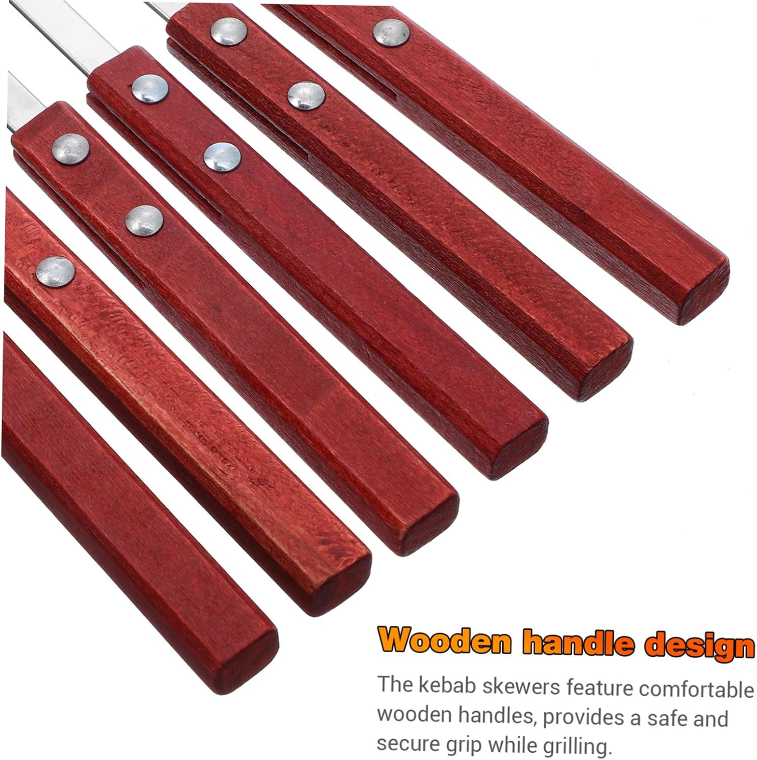 Package List x barbecue skewers Characteristics - Large size: The BBQ skewers are designed to accommodate big chunks of food, making them ideal for grilling meat or vegetables kabob sticks. -Material:Stainless steel Metal Skewers For Kabob - Metal material: Made of stainless steel, these flat skewers are not only high temperature-resistant and sturdy, but also simple to clean and maintain shish set. -Color:Brown vertical - Size: 40.00X1.50X1.00cm/15.72X0.59X0.39in Metal Skewers For Grilling - Wooden handle design: The skewers feature comfortable wooden handles, provides a safe and secure grip while grilling set. - Flat design: The flat skewers allow that food stays securely in place, preventing it from or sliding off during cooking skewers. - Versatile use: Whether you're grilling at home, hosting a party, or going on a picnic, these skewers are suitable for a variety of foods marshmallow.Goods InformationBarbecue Roasting Sticks The flat design of the skewers allows that your food stays securely in place, preventing any accidental falls.Roasting Skewers Introducing our Stainless Steel BBQ Skewers, the for grilling! These stainless steel skewers are not only strong but also convenient to clean